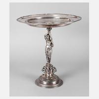 um 1890, gestempelt K. & Co. M, wohl Zweigwerk WMF, Britanniametall versilbert, reich dekoriert mit Schuppendekor, Früchten und Rollwerk, der figürliche Schaft als orientalische Schönheit, ein Füllhorn tragend, auf diesem die Platte mittels einer Rosette verschraubt, Schale mit Putzspuren, sonst guter altersgemäßer Zustand, H 38 cm.