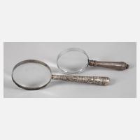 eine Silber geprüft, mit feiner Oberflächengravur und Ziselierung, Historismusdekor, Stärke 2,5, die andere versilbert, wohl Afrika mit Stärke 2,0, Gebrauchsspuren, L 22 cm und 26 cm.