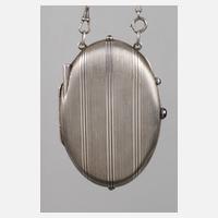 1. Hälfte 19. Jh., Silberstempel 13 Lot, Meisterpunze Friedrich Justus Dietz, einfach gestaltete Ovalform mit scharniertem Klappdeckel, Gebrauchsspuren, geputzt, L 8 cm, G ca. 77 g.