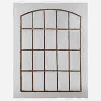 um 1900, mit Segmentbogen, kippbares Oberlicht, eine geschweißte Bruchstelle, ein Steg fehlt, restaurierungsbedürftig, H 140 x B 148 cm.