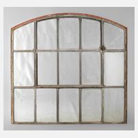 um 1920, Eisengestell mit Segmentbogen, ein Öffnungsflügel, Verglasung nicht komplett, restaurierungsbedürftig, H 190 x B 140 cm.
