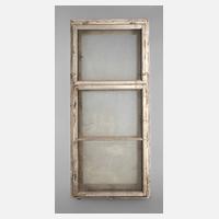 um 1910, Rahmen aus verzinktem Eisenblech, rechteckige Fenster mit klappbarem Oberlicht, Verglasung nicht komplett, stärkere Altersspuren, rest.bed., Maße 160 x 106 cm.