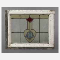 um 1900, stilisiertes Floralmotiv aus Farb- und Ornamentglas, IM 44 x 56 cm.