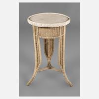 Entwurf Thilo Schoder attr., Ausführung wohl Korbmacherwerkstätten Tannroda, um 1920, dreibeiniges Gestell mit runder Platte, original grau-grün gefasst, später weiß überstrichen, Altersspuren, H 68 cm, D 41 cm.