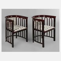 für das Depeschenbüro „Die Zeit“, Wien 1902, Ausführung Jacob & Josef Kohn, Buche gebogen, auf Mahagoni gebeizt, Sitzfläche gepolstert und mit erneuertem Lederbezug, Messingbeschläge an den Armstützen, Füße mit Messingschuhen, Brandstempel J. & J. Kohn, Höhe 77 cm, Breite 55,6 cm, Tiefe 49 cm, Sitzhöhe 46,5 cm. Info: Otto Wagner entwarf für das Depeschenbüro "Die Zeit" die gesamte Inneneinrichtung. Die ausführende Firma J. & J. Kohn erhielt von Otto Wagner die Erlaubnis, weiterhin eine kleine Anzahl von Exemplaren dieses Sessels herzustellen. Literatur: Das Interieur, IV, Wien 1903, S. 77; Gebogenes Holz. Konstruktive Entwürfe. Wien 1840-1910, Museum of Modern Art, Oxford 1985, Abb.16; P. Asenbaum, P. Haiko, H. Lachmayer, R. Zettl, Otto Wagner. Möbel und Innenräume, Salzburg - Wien 1984, S. 114.
