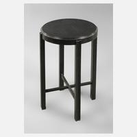 um 1925, Buche massiv, schwarz lackiert, runde Sitzfläche auf vier profilierten Vierkantbeinen mit Verstrebung, guter Originalzustand, H 50 cm, D 33 cm.