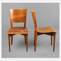 Ausführung Spojene UP Zavody, Hodonin, Tschechien, 1930er Jahre, Gestell aus massiver Eiche, organisch gebogener Sitz und Lehne aus Schichtholz, die Beine unter dem Sitz kreuzförmig verstrebt, wohnfertig restauriert, H 85 cm, SH 44 cm. Lit. vgl.: Jindrich Halabala, S. 107.