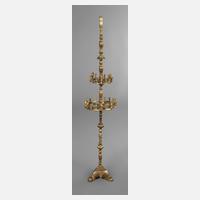 19. Jh., kyrillisch signiert Katarina, Bronze mehrteilig gegossen und montiert, bräunlich patiniert, dreipassiger Fuß mit schlankem Balusterschaft, zwei übereinanderliegende Ringe mit verschieden großen Kerzentüllen, Altersspuren, H ca. 145 cm.