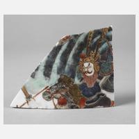 wohl 18. Jh., ungemarkt, rückseitig mit ungeprüfter handschriftlicher Zuschreibung [...] aus der Baugrube des Hotels Bellevue 1978, Scherben eines großen Gefäßes, ca. 1 cm starkes Porzellan in polychromer Emailbemalung, L 10 cm.
