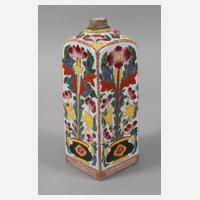 18. Jh., ungemarkt, Porzellan in polychromer Emailbemalung, schlankes Modell über quadratischem Grund mit abgeflachter Schulter und zylindrischem kurzen Hals, umlaufendes Floraldekor gerahmt von Ornamentbändern, brandfleckig, min.best., H 28 cm.