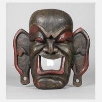 Kamerun, 2. Hälfte 20. Jh., dunkel eingefärbtes Weichholz, teils rot und weiß gefasst, ausdrucksstarke, tief profilierte Schnitzerei, Ohren separat gefertigt und montiert, H ca. 40 cm.