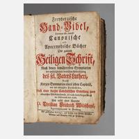 darinnen alle, sowohl Canonische als Apocryphische Bücher der ganzen Heiligen Schrift [...] und nebst einer Vorrede Christian Friedrich Wilischens, Freiberg [1749], Format Kl. 8°, 1079 S., dahinter Das Neue Testament, Freyberg 1776, 308 S., auf dem Vorsatz handschriftlich "Aus der Schröderischen und Sandigischen Stiftung ... Krosshartmannsdorf 1796", Ledereinband, altersgemäß noch befriedigender Zustand.