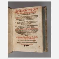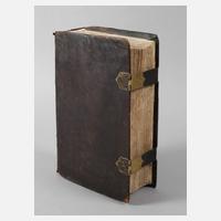 mit einer Vorrede Thomas Ittigs, Leipzig bey Friedrich Lanckischens sel. Erben, Format Gr. 8°, Titelkupfer Martin Luther, 816/568 und 430 S., 21 Kupfer, aus dem Besitz derer von Czettritz, originaler Schweinsledereinband, Buchschließen defekt, ein Beschlag fehlt, altersgemäß gut erhalten.