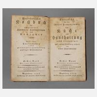 für angehende Hausmütter, Haushälterinnen und Köchinnen. Unterricht für ein junges Frauenzimmer das Küche und Haushaltung selbst besorgen will, aus eigener Erfahrung ertheilt von einer Hausmutter, 1. Bd. mit einer Kupfertafel, 2. Aufl., Magdeburg bei Crentz 1795, Format Kl. 8°, 608 S., Halbledereinband der Zeit, Rücken lädiert, Rotschnitt, Buchblock altersgemäß gut erhalten, Titelseiten mit Stockflecken.