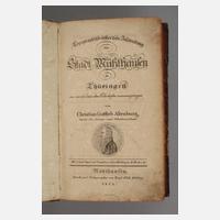 in Thüringen, aus verschiedenen alten Handschriften zusammengetragen von Christian Gottlieb Altenburg, Mühlhausen bei Röbling 1824, Format 8°, XXIV/VIII und 432 S., zahlreiche Kupfer: Grundriss der Stadt, Brunnenfest, Fleischhauer, Plan des Mühlhäusischen Gebiets (repariert), Warten, Oberes Frauen-Thor, Kirche Divi Blasii, Kirche Beatae Mariae Virginis, St. Jacobi, Kirche aller Heiligen, Prediger-Kirche, St. Nicolai, St. Petri, St. Georgi, St. Martini, Badekorb, Siegel, Wappen, zwei Kupfer Stadtsoldaten, Thomas Müntzer, Halbledereinband mit Rückenschildchen, Widmung um 1920, teils stärkere Altersflecken, befriedigender Zustand, teilweise sichtbare Erhaltungsmängel der Kupfer.