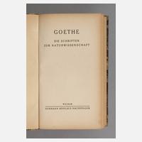 in 40 Bänden, "Die erste Gesamt-Ausgabe von Goethes Werken [...] begann im Jahre 1806 bei Cotta zu erscheinen. Seitdem sind die Namen Goethe und Cotta unzertrennlich verbunden. Das erste Jahrhundert dieses Bundes soll nicht schließen, ohne daß die Cotta'sche Buchhandlung ihm durch eine Jubiläums-Ausgabe ein würdiges Denkmal setzte.", Stuttgart und Berlin J. G. Cotta'sche Buchhandlung Nachfolger o. J. [1902], Format 8°, dekorative Halbledereinbände, marmorierter Schmuckschnitt, Vorsatzrückseiten mit leichten Spuren entfernter Exlibris, sonst altersgemäß sehr schön erhalten.