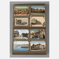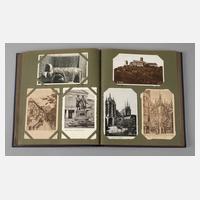 vor 1945, ca. 200 vorwiegend topographische Ansichtskarten, teilweise farbig lithographiert, u. a. Partie bei Barr mit Burg Andlau, Ruine Giersberg bei Rappoltsweiler, München Karlstor, Marienplatz, Karlstorrondell, Ramsau, Forsthaus Mylau i. V., Schloss Rochlitz Blick von der Bastei auf dem Panoramawege, Bad Elster Wettiner Hof, einige Dresden, in Album um 1920, H ca. 37,5 cm.