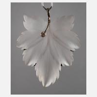 um 2000, Weiß- und Gelbgold gestempelt 750, besetzt mit einem fein gravierten und mattierten Blatt aus Bergkristall sowie einem Brillanten von ca. 0,07 ct, Maße ca. 48 x 38 mm, G ca. 10 g.
