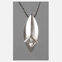 neuzeitlich, Weiß- und Gelbgold gestempelt 585, Navettform, besetzt mit einem Princess-Cut-Diamanten von ca. 0,14 ct in Zargenfassung, an ca. 35 cm langer Weißgoldkette gestempelt 333, G gesamt ca. 3,6 g.