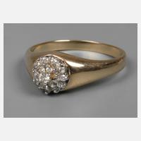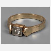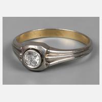 um 1930, Weiß- und Gelbgold gestempelt 585, besetzt mit einem Brillanten von ca. 0,06 ct, leichte Tragespuren, RW 16,5 mm, G ca. 3 g.