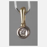 neuzeitlich, Gelb- und Weißgold, gestempelt 585, besetzt mit einem Brillanten von 0,18 ct, in Zargenfassung, L 18 mm, G ca. 4,7 g.