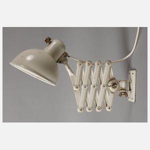 um 1930, mehrfach gemarkt, cremefarben gefasstes Metallgehäuse, einflammig elektrifiziert, rostspurig, etwas rest.bed., L min. 38 cm.