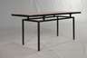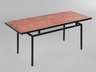 deutsch, 1960er Jahre, rechteckige Platte mit Glasmosaik in Rottönen, vereinzelt durchsetzt von goldenen Mosaiksteinen, Gestell aus schwarz lackiertem Eisen, Maße 51 x 118 x 47 cm.