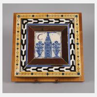 bezeichnet: "C.", vermutlich für Cordoba, Darstellung des Turmes "Torre Campanario", der Glockenturm der Mezquita von Córdoba, in späterem orientalischen Rahmen und noch späterer Holzfassung gerahmt, ausgebesserte Altersschäden, Innenmaß 14 x 14 cm, Gesamtmaß 33 x 32,5 cm.