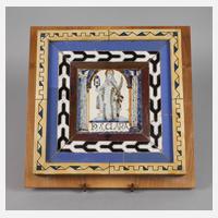 bezeichnet: "S.G. MO EDB. HA BISTA", Darstellung einer Heiligenfigur mit Kreuz und Löwe in angedeuteter Landschaft, in späterem orientalischen Rahmen und noch späterer Holzfassung gerahmt, Alterscraquelé, ausgebesserte Schäden, Innenmaß 19,5 x 19,5 cm, Gesamtmaß 32 x 32 cm.