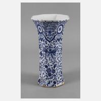 Pinselmarke AK, um 1635–1792, hellbrauner Scherben weißlich glasiert, fein mit kobaltblauer Scharffeuerfarbe floral bemalt, oktogonal facettiert, mit leicht ausgestelltem Fuß und ausschwingender Mündung, am Stand Glasurfehlstellen und Chips, etwas brandfleckig, insgesamt altersgemäßer Zustand, H 30 cm. Quelle: D. J. G. Th. Graesse, Porzellan und Fayence, Klinkhardt & Biermann, S. 277, Nr. 114.