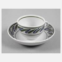 Anfang 20. Jh., ungemarkt, cremefarbenes Steinzeug, weiß glasiert und mit Scharffeuerfarben bemalt, verziert mit Zweigen und Dolden, normale Altersspuren, H 6 cm.