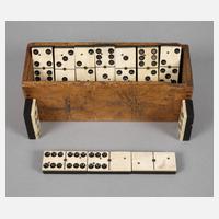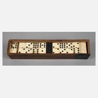 19. Jh., 55 Spielsteine aus Ebenholz und Bein, in originaler Schatulle, Alters- und Gebrauchsspuren, L Etui 28 cm, Maße Steine 4,5 x 2 x 0,5 cm.