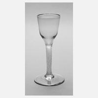 1. Hälfte 19. Jh., farbloses Glas, blasiger Abriss, flacher Scheibenfuß, konischer Stiel mit zweifach eingeschmolzener Spirale, glockenförmige Kuppa, Glas etwas blasig, insgesamt guter unbeschädigter Zustand, H 16,5 cm.