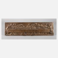 1. Hälfte 20. Jh., unsigniert, Bronze hellbraun patiniert, Darstellung Jesu mit seinen zwölf Jüngern beim letzten Abendmahl, Patina mit kleinen Altersspuren, sonst gut erhalten, Maße ca. 19,5 x 66 cm.