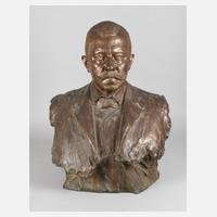 um 1900, signiert, Bronze dunkel patiniert, Bruststück der jungen St. Maria Faustina Kowalska mit lächelndem Gesichtsausdruck, das Haar kunstvoll nach oben gebunden und das Gesicht nach links gedreht, auf als Podest gestalteten, konischen, dreiteilig zusammengesetzten Marmorsockel montiert, das mittige Element aus Bronze, Sockel geklebt, H Bronze ca. 19 cm, H gesamt ca. 34 cm. Künstlerinfo: deutscher Bildhauer (1859 Markdorf bis 1910 Berlin), studierte 1875–1877 an der Kunstgewerbeschule in Stuttgart, anschließend bis 1880 an der Unterrichtsanstalt des Kunstgewerbemuseums in Berlin, blieb ebenda ansässig, regelmäßig auf den Kunstausstellungen in Berlin, München und Düsseldorf vertreten, Quelle: Thieme-Becker und Internet sowie Berman: Bronzes Sculptors and Founders, Vol. III, S. 734, Abb. 2661.