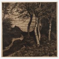 Rand eines Birkenwäldchens mit Blick auf eine geduckte Kate, Radierung, Anfang 20. Jh., rechts unten von Hand signiert „Hans am Ende“ und links Signatur des Druckers Otto Felsing“, am unteren Plattenrand im Druck bezeichnet „Hans am Ende Worpswede“, leicht gebräunt, unter Passepartout und hinter Glas gerahmt, Darstellungsmaße ca. 34 x 34 cm. Künstlerinfo: dt. Maler und Mitbegründer der Künstlerkolonie Worpswede (1864 Trier bis 1918 Stettin), 1872 Umzug der Familie nach Kirchscheidungen bei Naumburg an der Saale, ab 1884 Studium an der Akademie in München bei Wilhelm von Diez, nachfolgend Studium an der Großherzoglich Badischen Kunstschule in Karlsruhe bei Ferdinand Keller, auf Drängen von Fritz Mackensen 1889 Umzug nach Worpswede und zusammen mit Otto Modersohn, Fritz Overbeck und Fritz Mackensen Gründung der „Künstlerkolonie Worpswede“, welcher sich auch Heinrich Vogeler anschloss, Quelle; Thieme-Becker, Wikipedia und Internet.