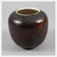 Entwurf 1930-1947, Ausführung Liebfriede Bernstiel um 1939-1946, cremefarbener Scherben mit dunkel changierender Glasur in Rot, Braun und Grau, innen hell, leicht türkisfarben akzentuiert, am Mündungsrand ein herstellungsbedingter Glasurfehler, sonst guter unbeschädigter Zustand, H 18 cm.