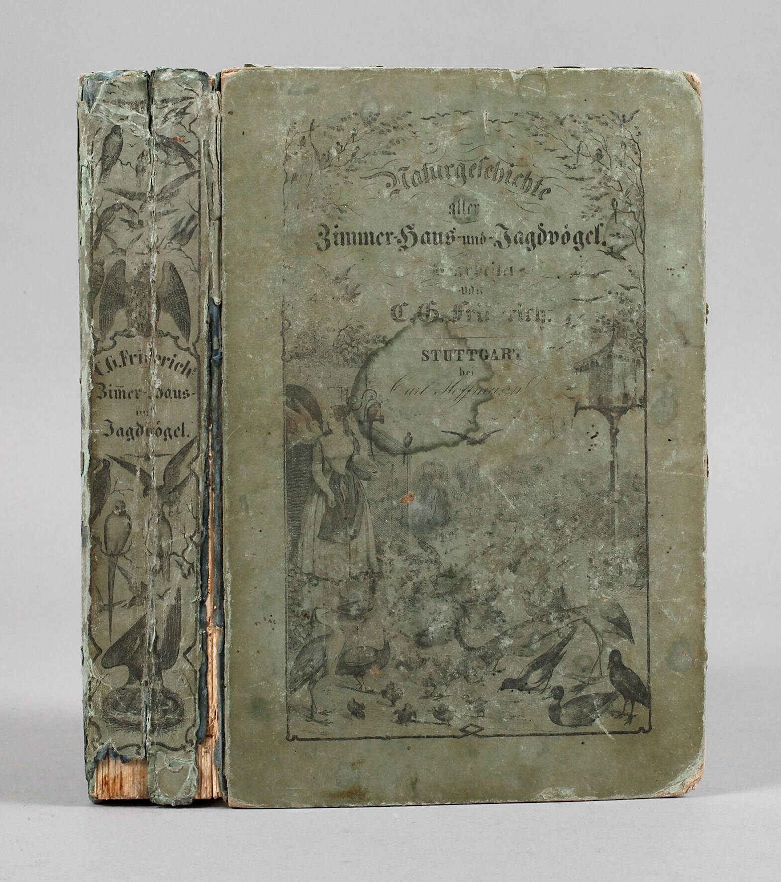 nebst einem Anhange über die ausländischen Vögel, welche in Deutschland im Handel vorkommen, bearbeitet von C. G. Friedrich, Stuttgart 1849, Format 8°, 660 S., alle 20 Tafeln vorhanden, Pappeinband schlecht erhalten, Buchblock in befriedigendem Zustand.
