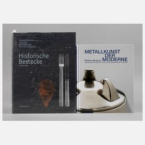 Metallkunst der Moderne, Katalog Bröhan-Museum 2001, 598 S., guter gebrauchter Zustand. – Jochen Amme, Historische Bestecke. Formenwandel von der Altsteinzeit bis zur Moderne, Stuttgart 2002, 663 S., neuwertig/verpackt.