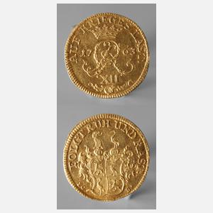 Münze Saalfeld, Münzmeister Johann Christian Eberhardt, Auf den Hubertusburger Frieden 1763, vz mit Umlaufspuren, minimal wellig, G ca. 3,49 g.