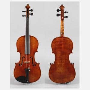 1930er Jahre, ohne Klebezettel, geteilter, gleichmäßig geflammter Boden im gelblichen Lack, umlaufende dreiteilige Randeinlage, rissfreie Decke, gepflegter spielbereiter Zustand, L Korpus 35,6 cm.