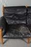 Entwurf 1960er Jahre für Ire-Möbler Schweden, zweisitziges Gestell aus massivem Teakholz, lose aufgelegte Sitzkissen und Nackenrolle, mit schwarzem Rindslederbezug, dieser mit Alters- und Gebrauchsspuren, ein Lederknopf fehlt, Maße 83 x 165 x 105 cm.