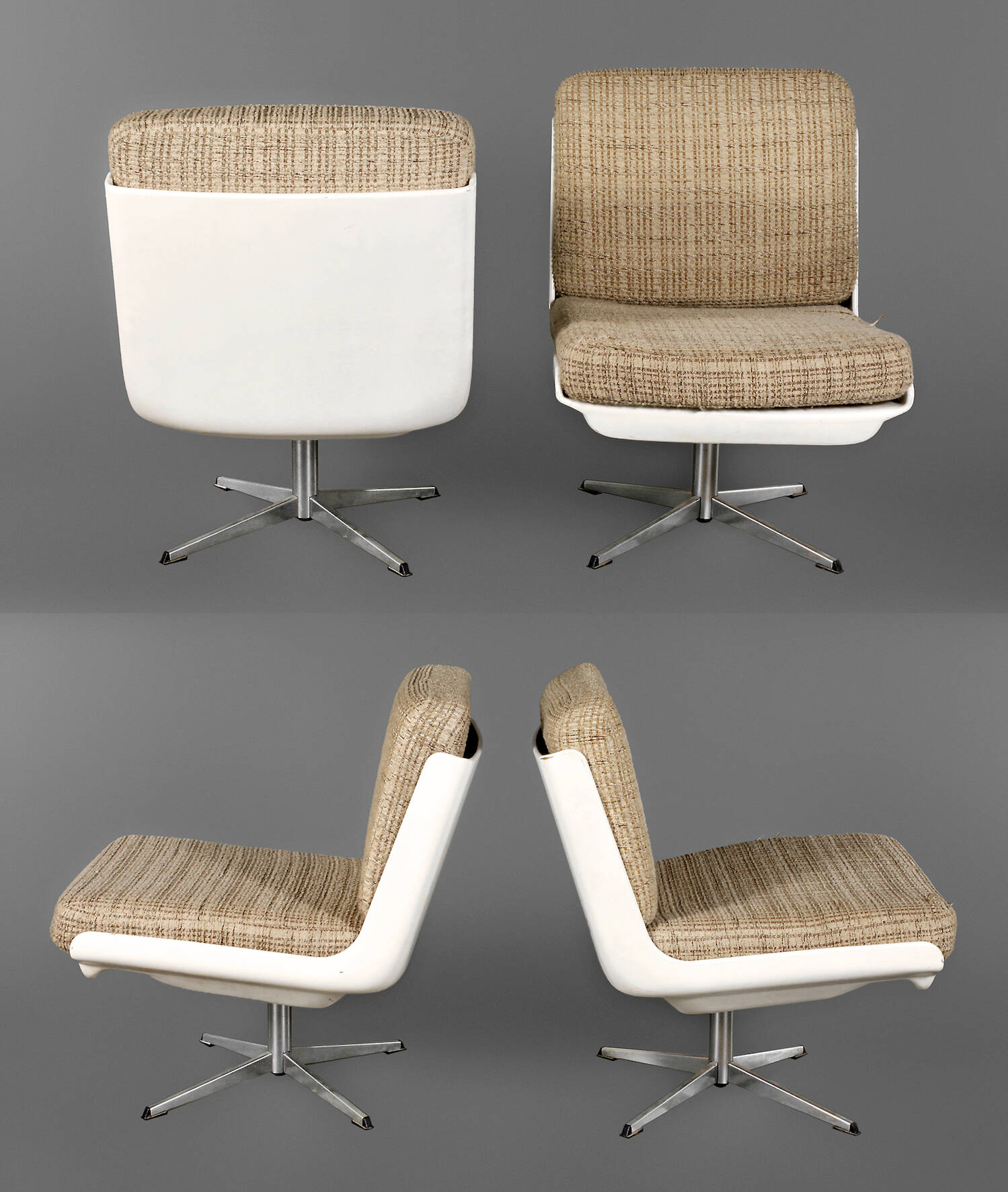 Modell Variopur, Ausführung PCK VEB Petrolchemisches Kombinat Schwedt, 1970er Jahre, verchromtes Drehgestell, originale Polsterauflagen, Alters- und Gebrauchsspuren, Chrom zum Teil mit Flugrost, Maße 86 x 60 x 70 cm.