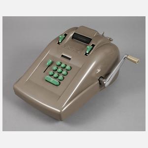 USA, Mitte 20. Jh., gemarkt, graues Kunststoff- bzw. Eisengussgehäuse, verchromte Metallteile, mintgrüne Tastatur, funktionstüchtig, min. Gebrauchsspuren, Maße 24 x 32 x 18 cm.
