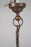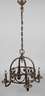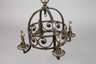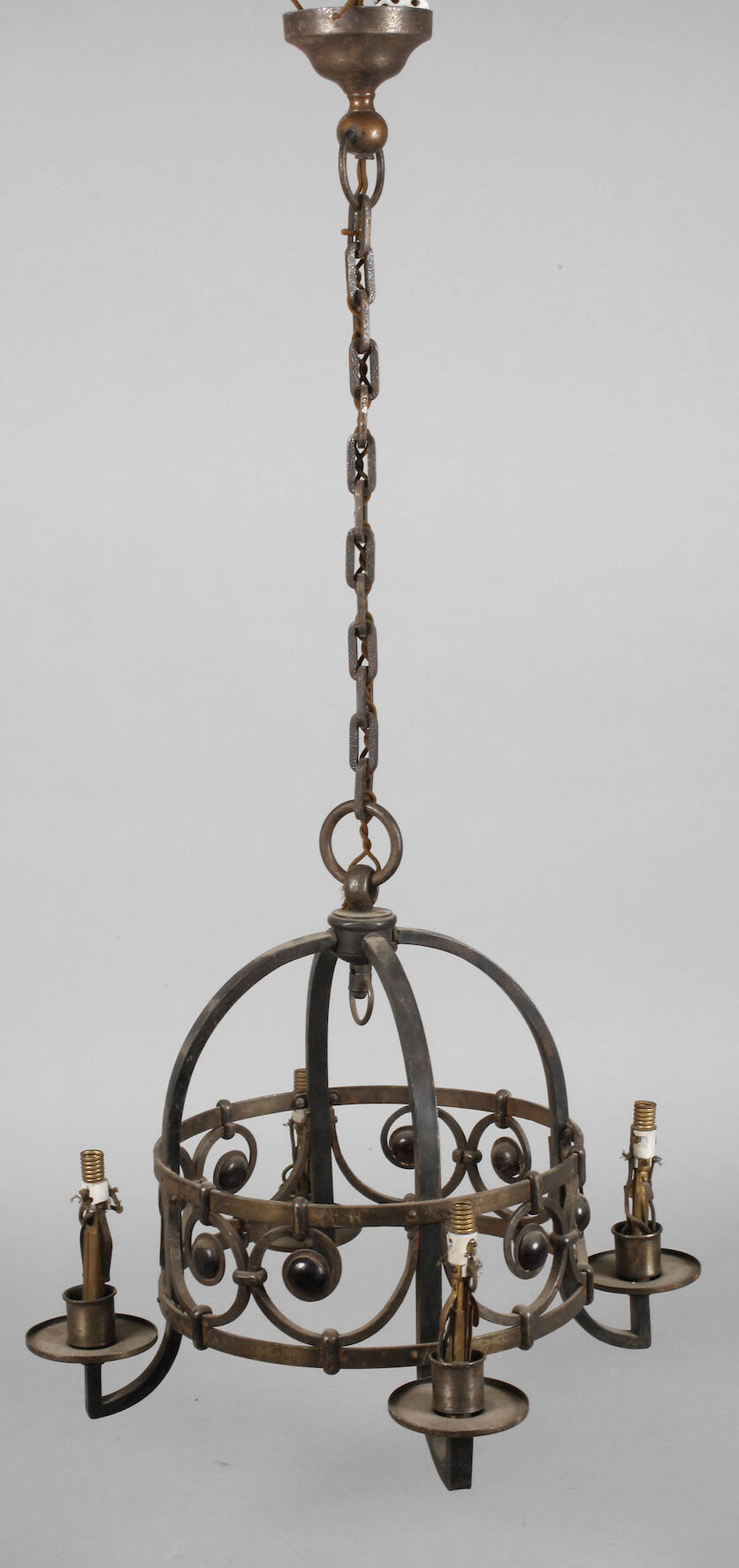 Anfang 20. Jh., an Gliederkette abgehängter, von Rankwerk durchbrochener ringförmiger Korpus, vier Lampenfassungen tragend, stärkere Alters- und Korrosionsspuren, Elektrik rep.bed., Z 4, H ca. 80 cm, D ca. 45 cm.