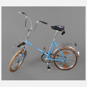 Sangerhausen, 1980, Modell 904, gemarkt, klappbares Rad mit Metallrahmen, beigegeben originaler Garantieschein mit Gebrauchsanleitung, sehr gepflegter Zustand, funktionstüchtig, L ca. 130 cm.