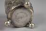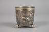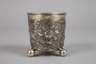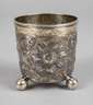 18. Jh., gestempelt N im Kreis, Tremulierstrich, unbestimmte Meistermarke, Silber getrieben und vergoldet, fein ziseliert, hohl gearbeitete Kugelfüße, guter Zustand, H 8 cm, G ca. 98 g.