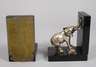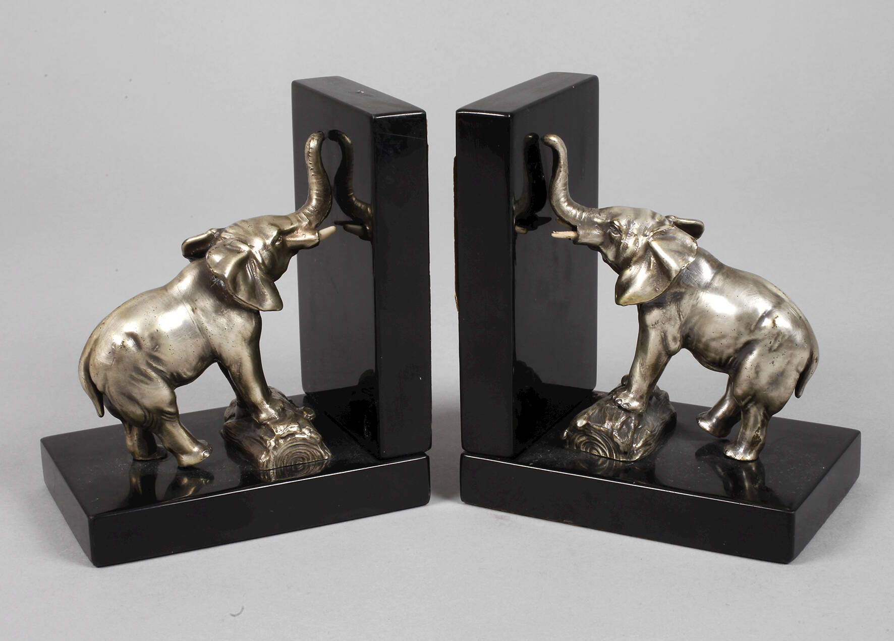 1930er Jahre, Metallguss versilbert und zaponiert, unsigniert, vollplastische, naturalistisch ausgeformte afrikanische Elefanten, die Stoßzähne aus Bein (zwei ergänzt), Altersspuren, H je 14 cm.