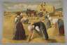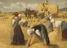 Bauern und Bäuerinnen bei der gemeinsamen Getreideernte, Farblithographie, um 1910, im Stein signiert „Adolf Hofner“, Maße ca. 69,5 x 99,5 cm.