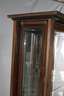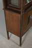 wohl Darmstadt, um 1905, indischer Palisander furniert und massiv, innen in Mahagoni furniert, dreiseitig, verglaste Vitrine mit facettgeschliffenen Scheiben und verspiegelter Rückwand, eine Schlagleiste lose, die zwei Säulen erneuert, Maße 186 x 100 x 47 cm.